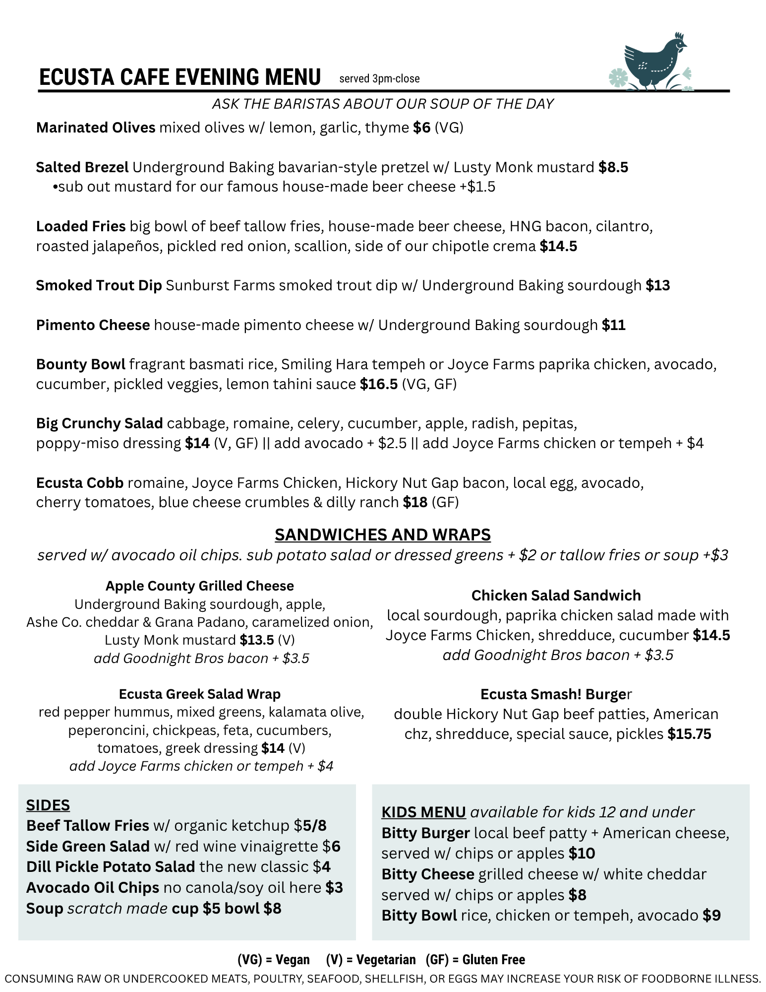 Cafe Menu